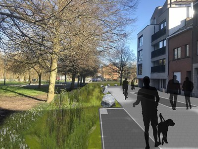 Dankzij de helling gaat het regenwater van de straat naar de beplantingen. Deze vangen het water op om tot een natuurlijke infiltratie te komen van het regenwater. Bij hevige regenval gaat het overtollige water naar het Koning Boudewijnpark.